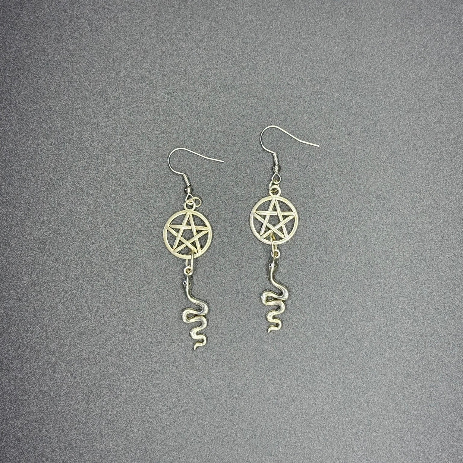 Boucles d’oreille pentagramme et serpent