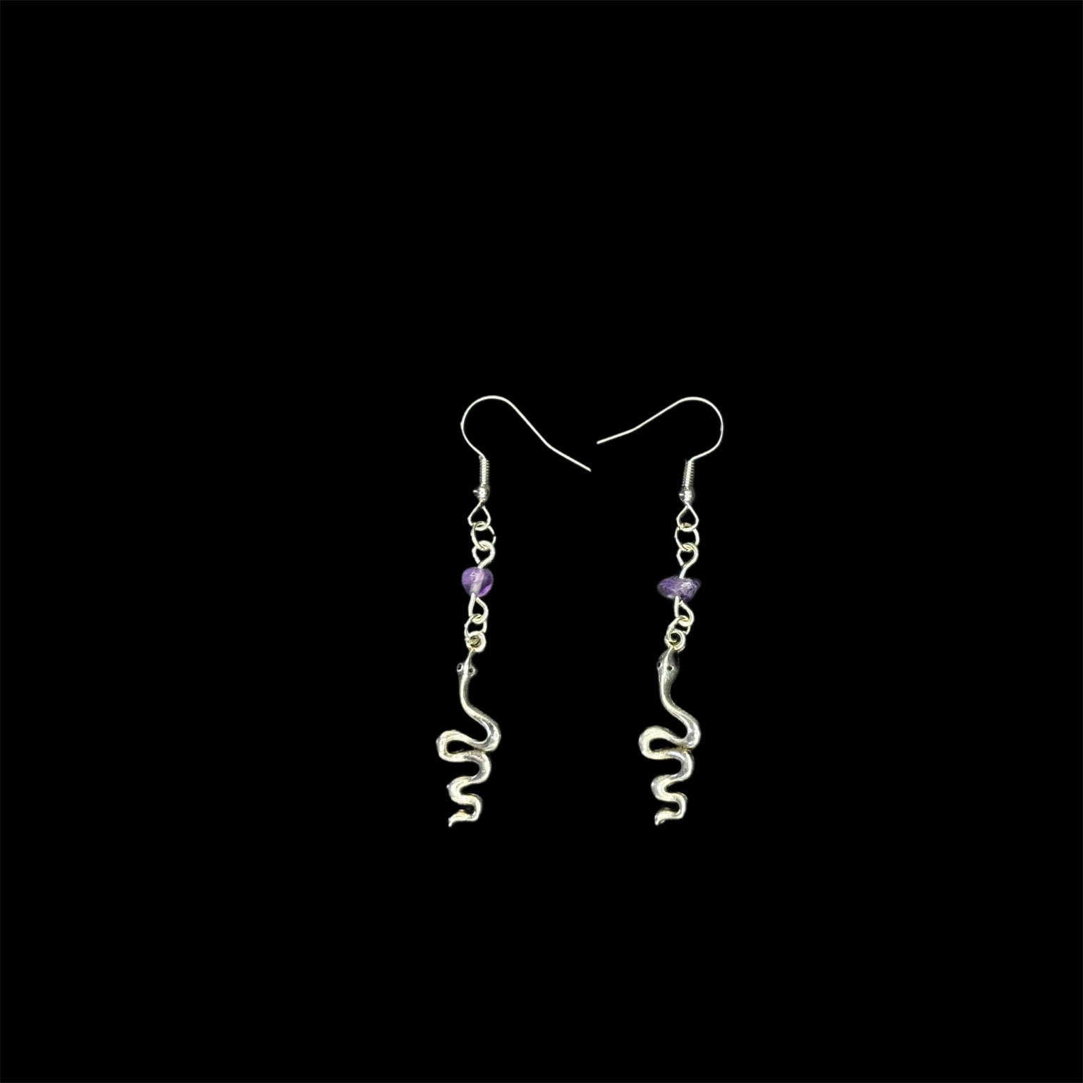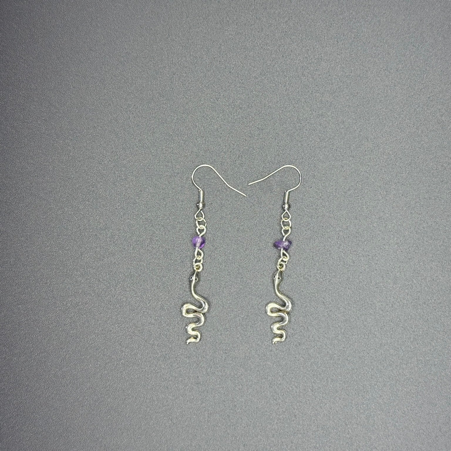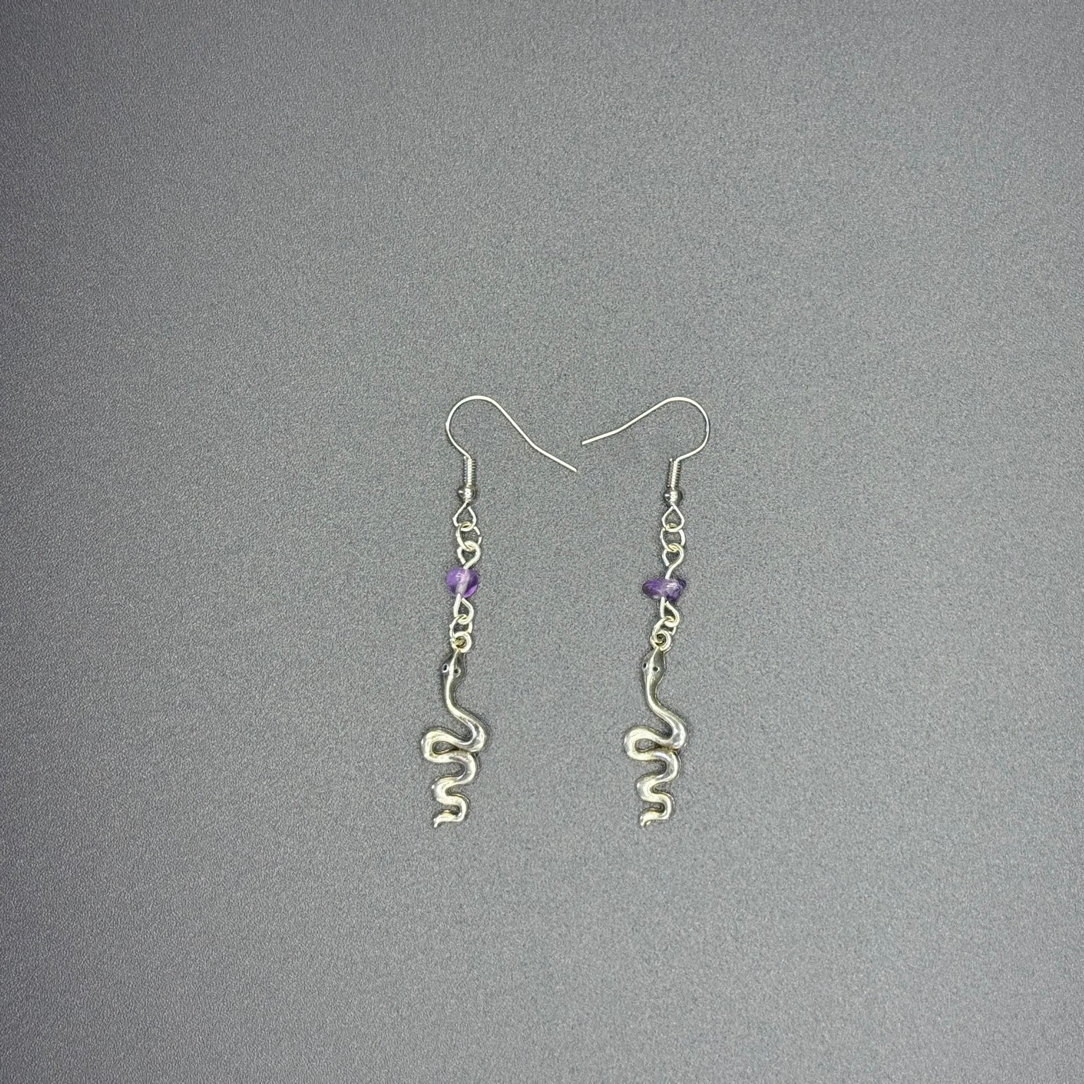 Ces boucles d’oreille pendantes argentées sont à la fois élégantes et audacieuses. Orné d'un serpent enroulé et d’une pierre d’améthyste étincelante, ce sont le choix parfait pour exprimer votre personnalité unique. Le design élégant et la pierre naturelle apportent une touche d'originalité à votre style.